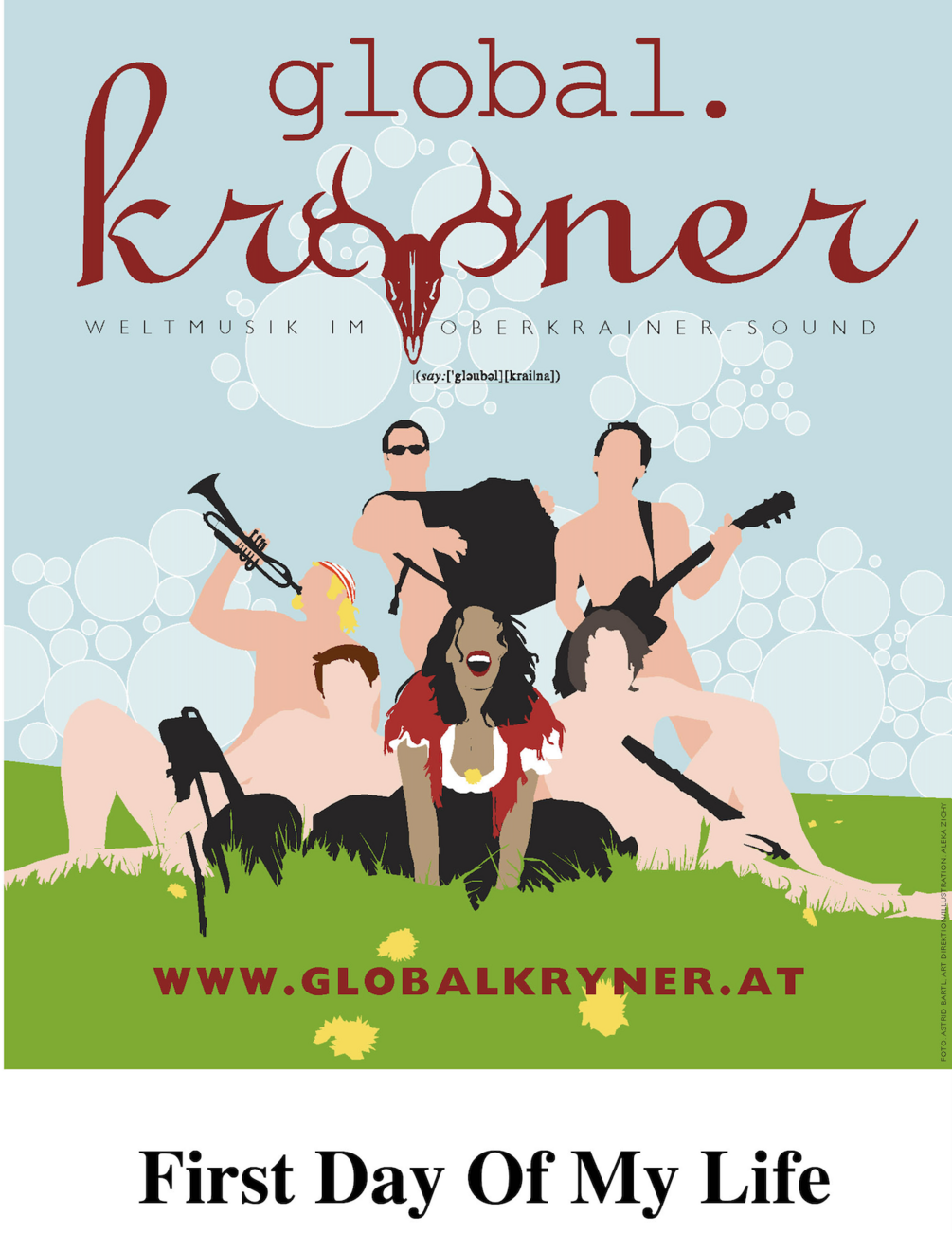 "First day of my life" as played by Global Kryner. Each package consists of 6 individual parts (vocals, trumpet, clarinet, accordion, guitar, trombone), lyrics, cover and the entire score!