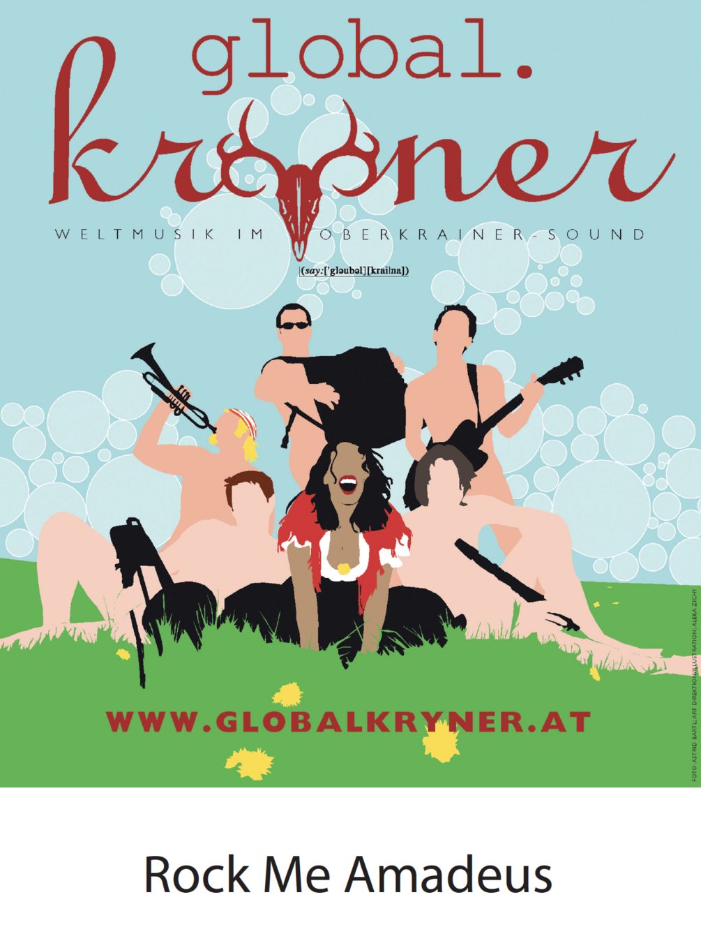 "Rock me Amadeus" as played by Global Kryner. Each package consists of 6 individual parts (vocals, trumpet, clarinet, accordion, guitar, trombone), lyrics, cover and the entire score!