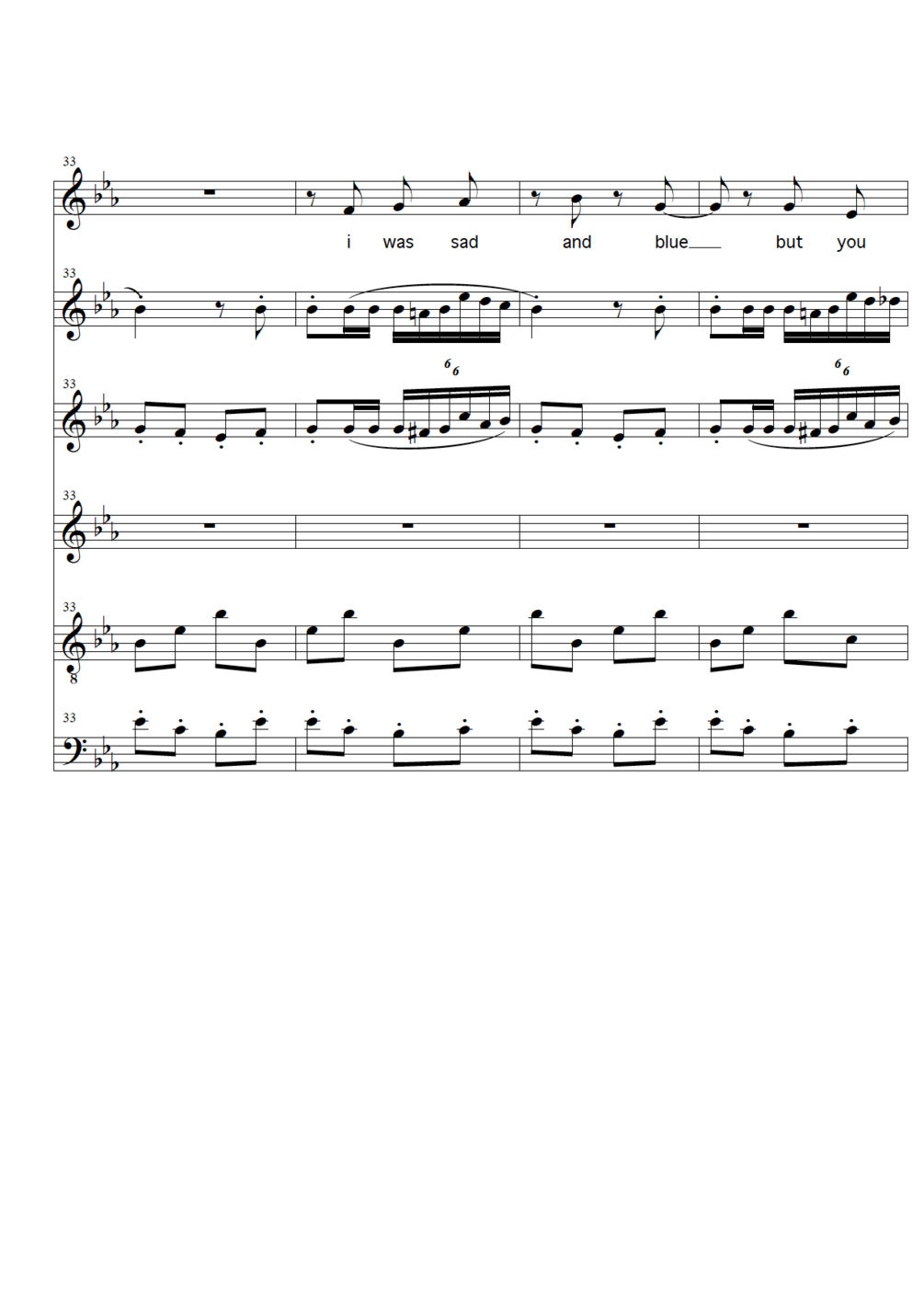 Complete Score and separate parts for voc, tr, cl, acc, git and tromb